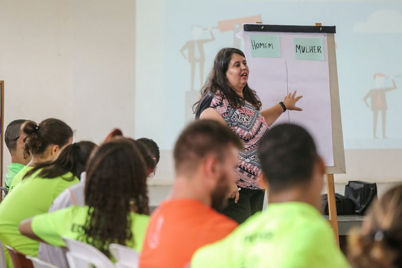 Using performances, interactions, games and ludic activities, the project entitled Sexualidade em Ação(Sexuality in Action) also focus on discussions related to health, sexual and reproductive rights, gender equality and diversity. Themes such as gender, prevention of sexually transmitted diseases, Aids, among others, are approached in a simple and informal way.