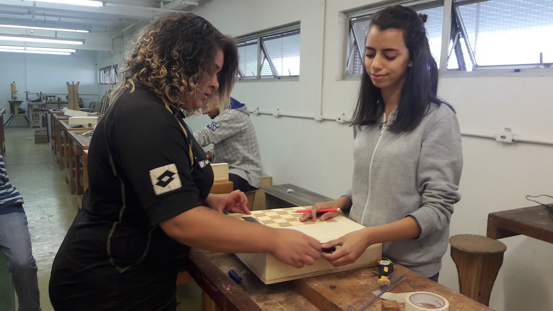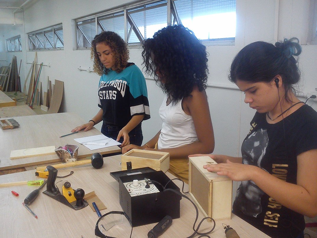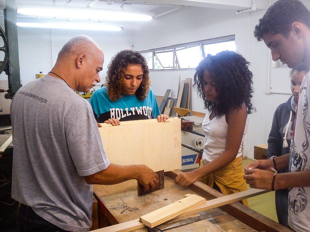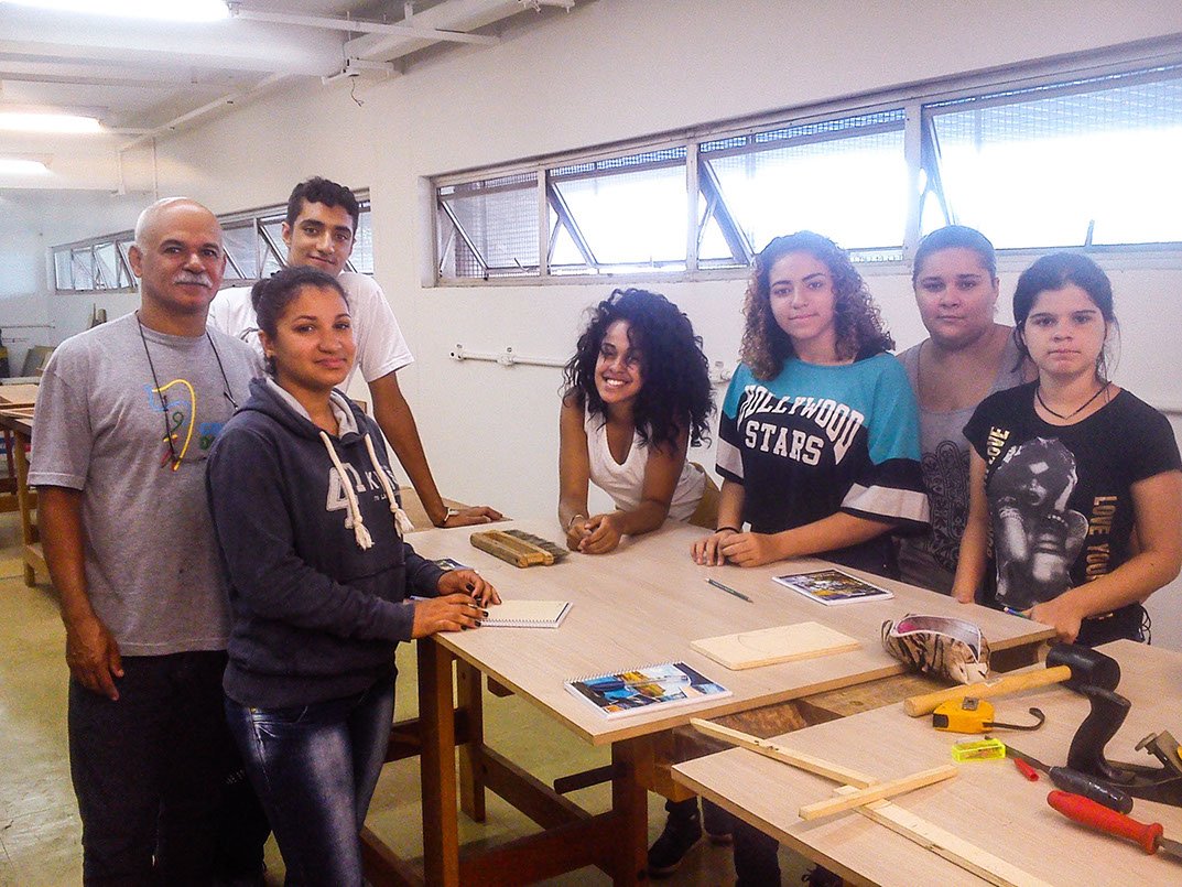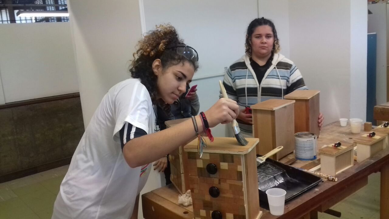 “I learned many things in this course. We had theoretical and practical classes, learning about wood (types and names), and the use of objects and machines. In the theoretical classes I learned how to do the blueprints and deal with numbers, activities required for the manufacture of cases and small chest of drawers. I think that I made progress, as every workshop represented a new learning and more knowledge. Besides that, we learn how to work in team”.